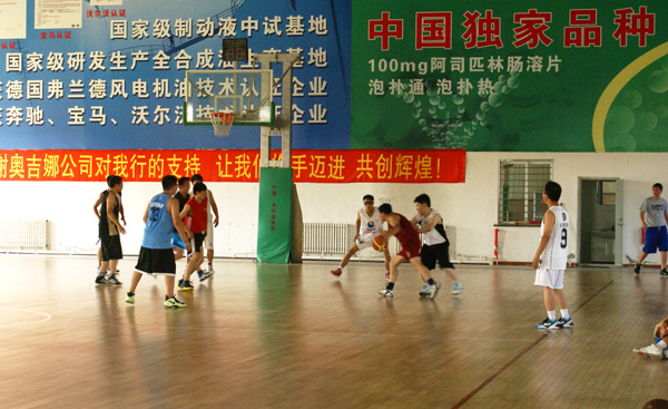 7月14日下午,奥吉娜与北车集团沈阳机车车辆有限责任公司举行了篮球友谊赛。14:00,随着裁判一声哨响比赛正式开始,比赛中双方队员,奋力厮杀,激情对决。