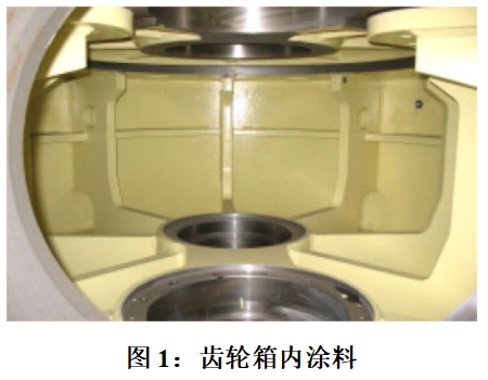 涂料主要用于齿轮箱外部和内部的?;ぁ3萋窒渫獠客苛系淖饔檬堑钟窳踊肪扯猿萋窒湓斐傻母?、盐蚀等危害,内涂料用于齿轮箱储存和运输过程中防腐蚀,并且内涂料能够束缚加工过程中留在齿轮箱中的铁屑和沙粒。而内涂料的选择和使用还应该注意什么呢?内涂料作为齿轮箱的内涂层保护(见图1),不可避免的与齿轮油接触,所以内涂料和齿轮油的兼容性就显得非常重要。